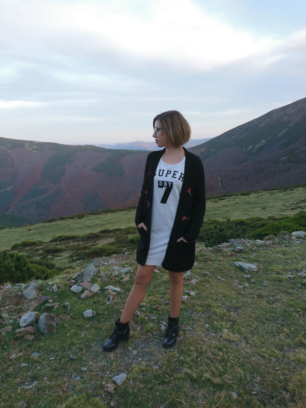 Es una sudadera larga por encima de la rodilla, tiene las mangas en forma de rejilla(lo que lo hace perfecto para prácticamente todo el año) y bolsillos laterales. Para invierno si eres tan friolera como yo, pero renuncias a los vestidos por su comodidad, métele una camiseta básica o de tul por debajo o como os enseño en mi foto con un cardigan de punto por encima.